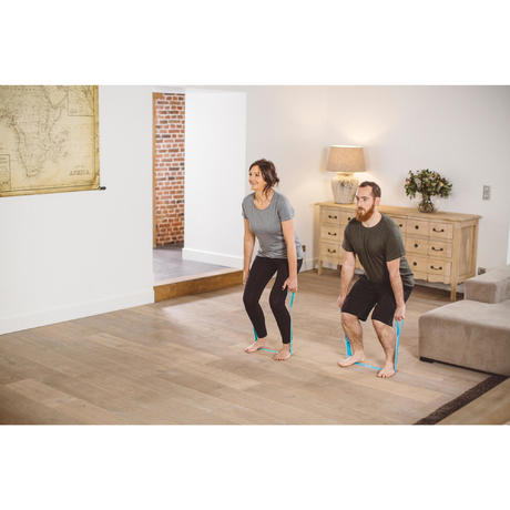 Aussi efficaces mais moins lourdes que les haltères, les sangles de résistance sont une alternative plus légère et pratique pour se tonifier, avec une possibilité de varier les exercices. Vous travaillez le contrôle de vos mouvements, et de manière progressive.