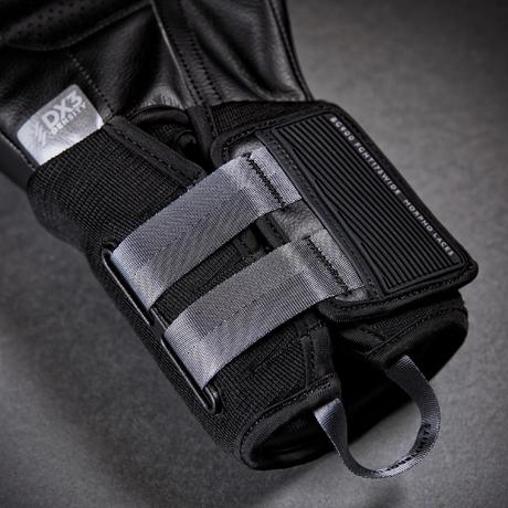 Les double bandes de serrage vous assurent un serrage facile et qui s'adapte parfaitement à votre morphologie , ces bandes ont été conçues pour imiter les lacets des gants professionnels mais avec une rapidité et une facilité d'enfilage accrue. L’accessoire en silicone vous permet de serrer vos gants plus facilement .