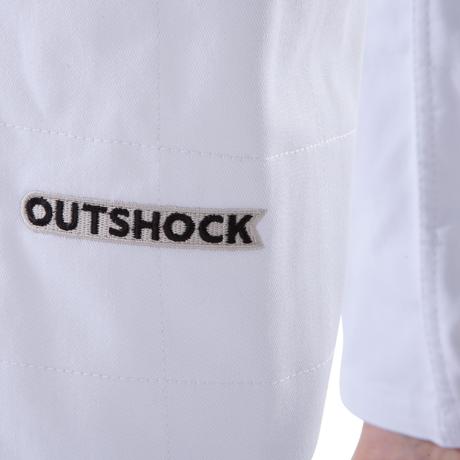 "Je viens du karaté et une chose qui m'a toujours marqué au judo c'est cette notion de force et de souplesse simultané. Les judokas pratiquent avec une élégance qui est belle à voir. J'aime aussi l'idée que le dojo est beaucoup plus grand que le lieu en lui même : ça t'apprend beaucoup de choses sur toi-même en dehors de ses murs. C'est cette justesse, ces valeurs que j'ai retrouvées chez Outshock et qu'on a voulu transmettre dans nos judogis."
