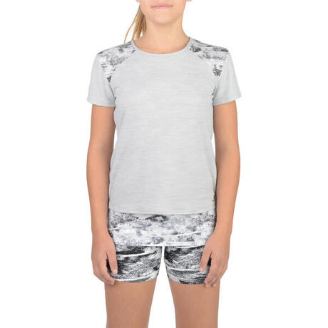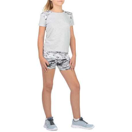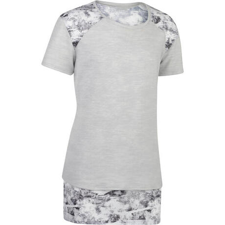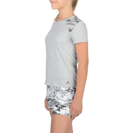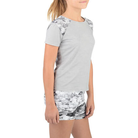 T-Shirt long manches courtes 500 Gym Fille gris blanc